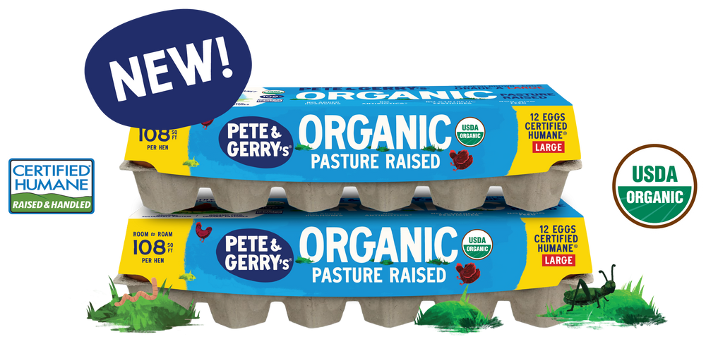 First to do it better, and still doing it best; we've been raising the bar for egg-cellence for nearly 30 years. Now, we're proud to say we've doubled down on our commitment with the launch of Pete & Gerry's Organic Pasture Raised Eggs, rooted in the same values that started it all. Certified Humane® Pasture-Raised. USDA Organic.